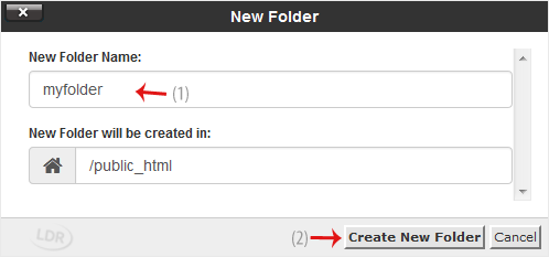 5. In the New Folder Name field, enter your folder name, such as my-folder. Then click on Create New Folder.
