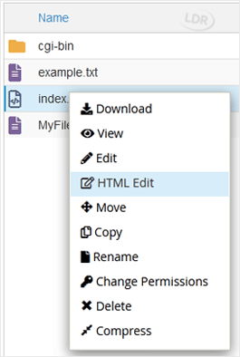 4. Right-click on the file. Then click on Edit or HTML Edit in the Context Menu.