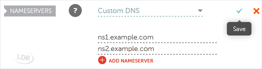 5. Enter your nameservers in the text fields and click on the Save icon.