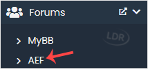 4. On the left side, locate the Forums category. Click on it and then on the AEF link that appears.