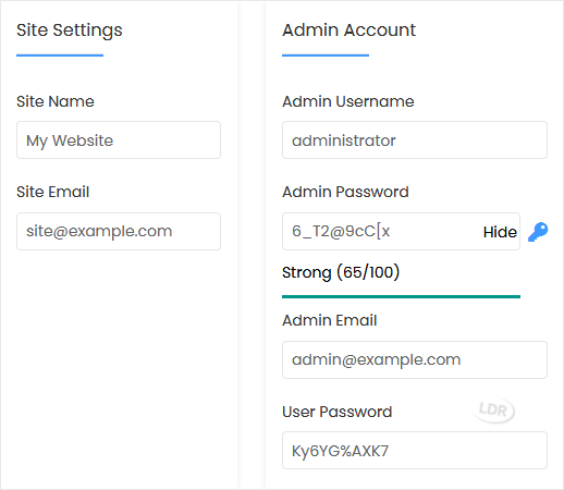 • Admin Email: Your e-mail address.
