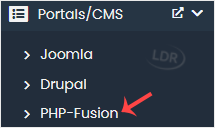 4. On the left side, locate the Portal/CMS category. Click on it and then on the PHP-Fusion link that appears.