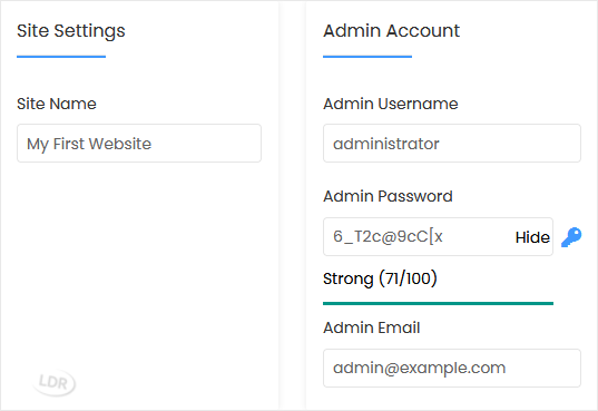 • Admin Password: Use a strong password.